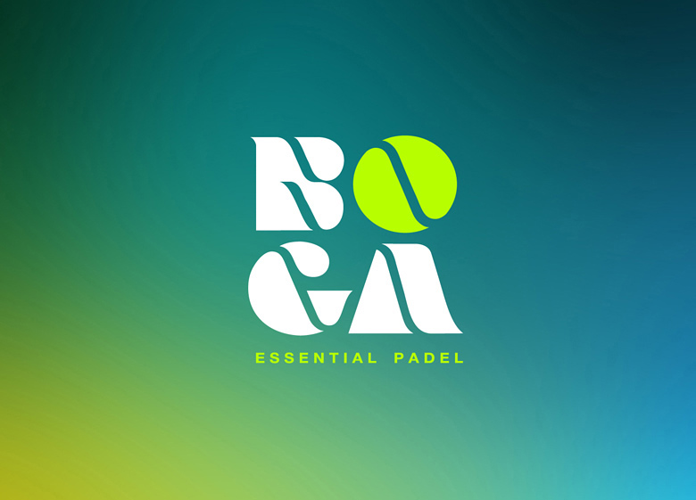 Diseño de logotipo para Boga, una tienda de Madrid que vende todo tipo de complementos para jugar al padel como raquetas, ropa deportiva, calzado, mochilas y otros accesorios.