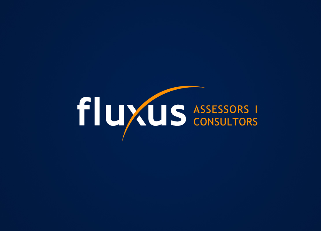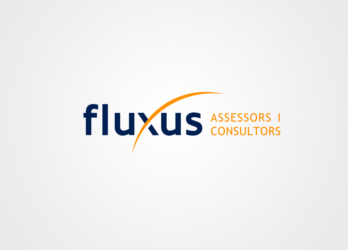 Diseño de logotipo para Fluxus, una asesoría y consultoría barcelonesa que presta servicios de contabilidad, censura de cuentas y asesoramiento fiscal, económico y financiero.